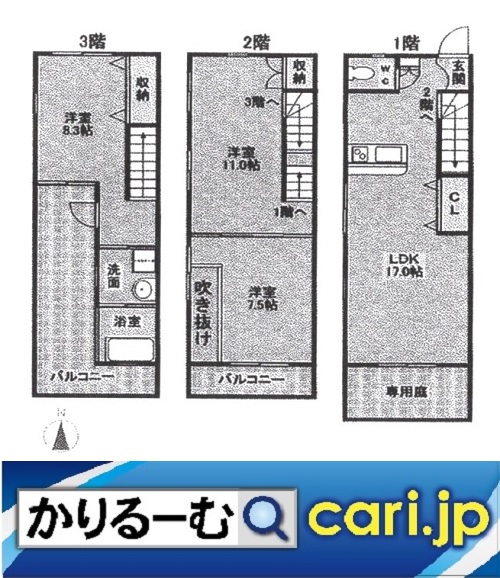 メゾネット賃貸 3階建て 3LDK セルテス5 間取図